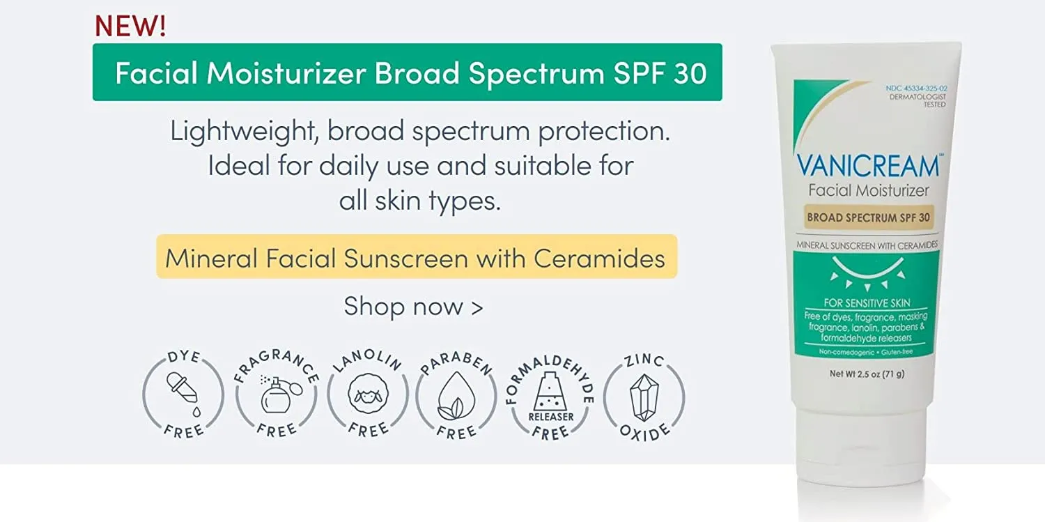 - Vanicream Facial Moisturizer with SPF is free of dyes. fragrance. masking fragrance. lanolin. parabens and formaldehyde releasers.